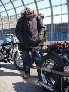 撮影の合間に変態W650ディガーにまたがる